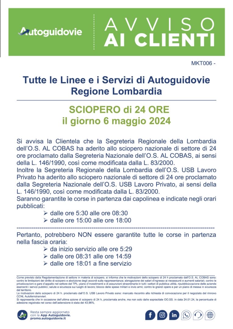 Inoltre la Segreteria Regionale della Lombardia dell’O.S. USB Lavoro Privato ha aderito allo sciopero nazionale di settore di 24 ore proclamato dalla Segreteria Nazionale dell’O.S. USB Lavoro Privato, ai sensi della L. 146/1990, così come modificata dalla L. 83/2000.