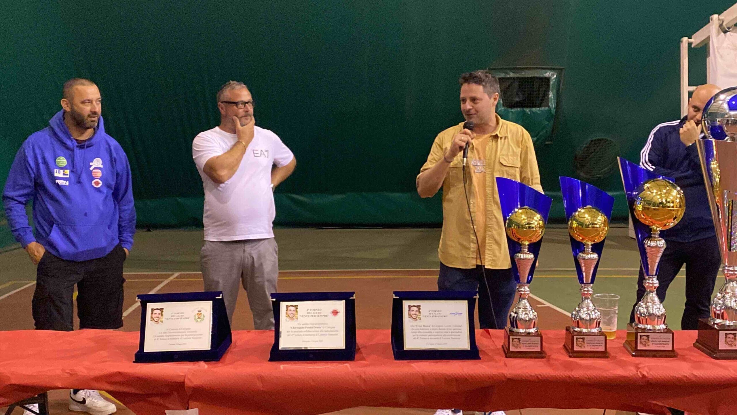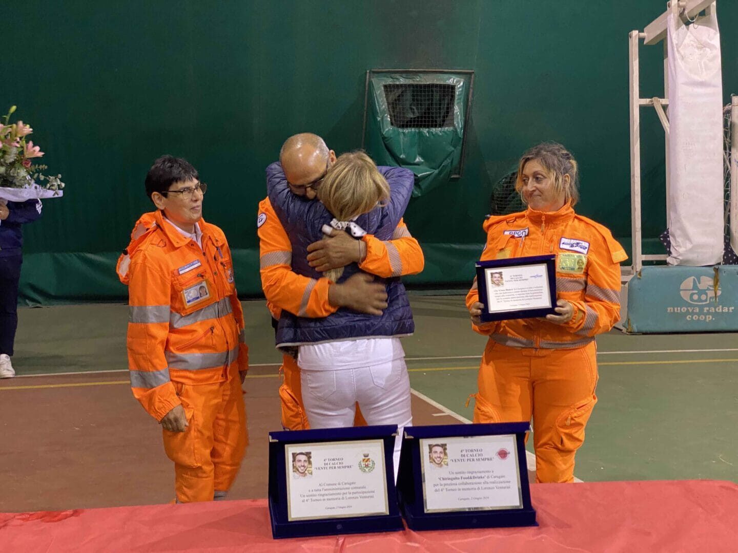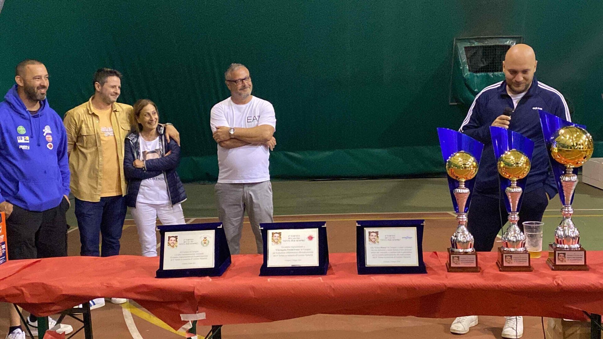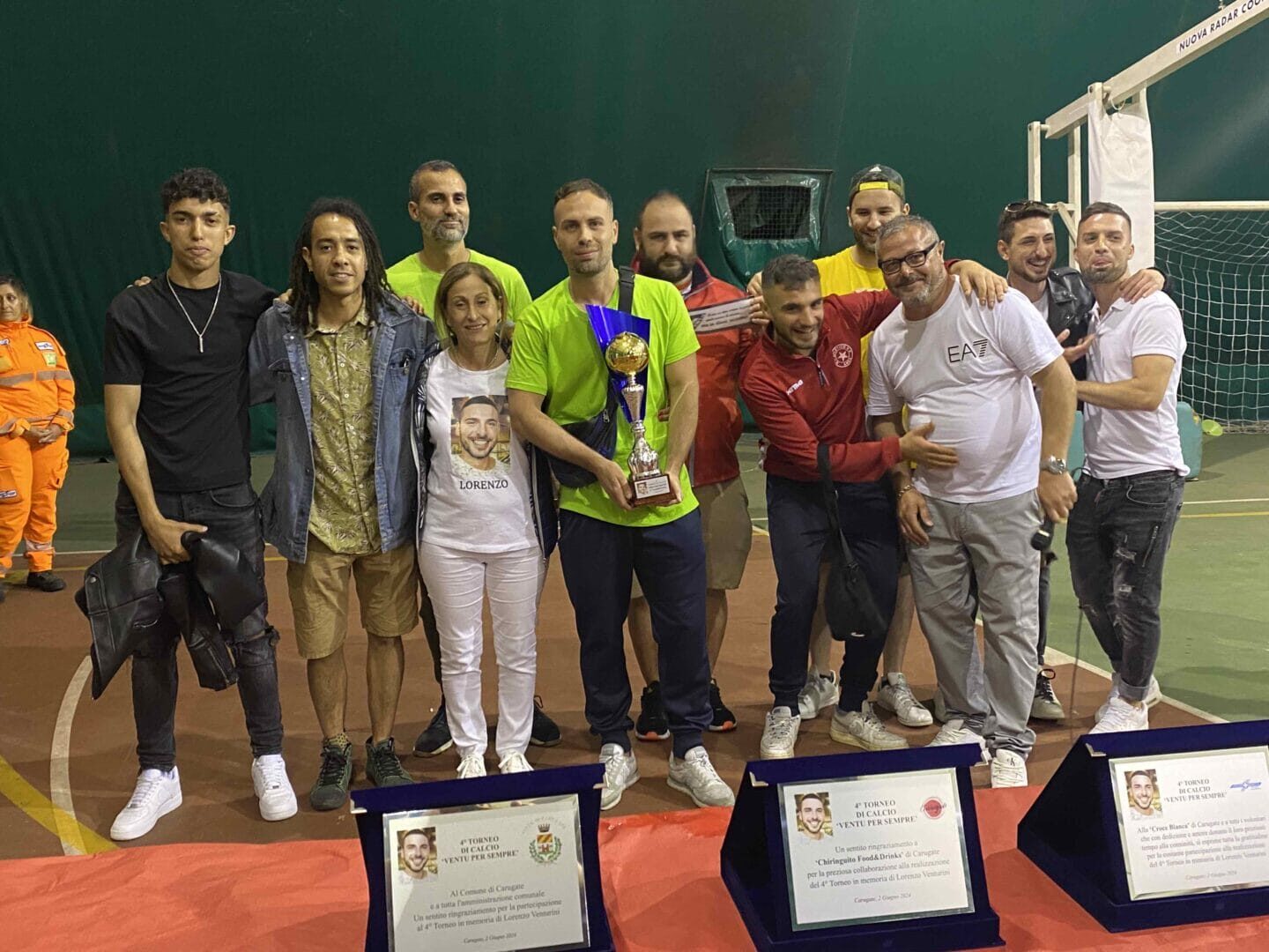Nemmeno la pioggia ha fermato il desiderio e la voglia di ricordare il ragazzo. Dal campo di calcio, le premiazioni del quarto memorial “Ventu per sempre” si sono infatti trasferite, a causa delle avverse condizioni atmosferiche, nella tensostruttura del Ginestrino. A premiare i partecipanti l’Assessore allo Sport di Carugate Marco Riboldi e Davide Maiolo del Chiringuito, storico locale carugatese frequentato da tantissimi giovani. Amici, partecipanti e conoscenti si sono poi stretti in un abbraccio collettivo con la mamma di Lory e hanno ringraziato i volontari della Croce Bianca di Carugate, anche loro premiati con una targa speciale per il loro impegno e la loro vicinanza.