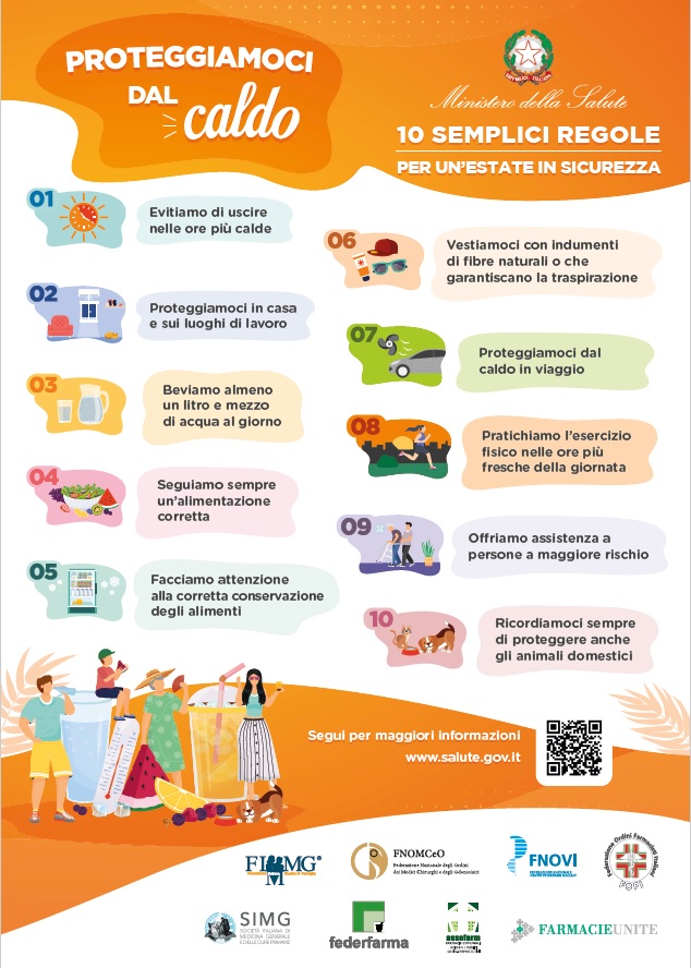 In allegato è possibile consultare e scaricare il Piano Operativo per l’Emergenza Caldo 2024 di ATS Brianza e la locandina del Ministero della salute sulle 10 semplici regole per un’estate in sicurezza.