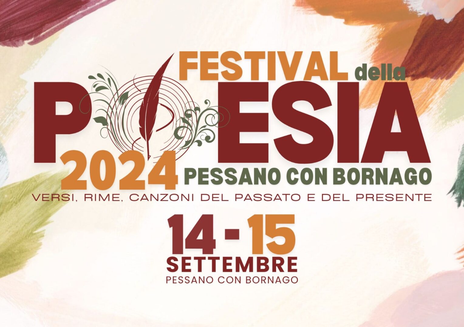 L’Amministrazione Comunale di Pessano con Bornago, in collaborazione con Alboran Cooperativa Sociale e la Biblioteca Civica “F. Tarchi”, promuove l’evento “Festival della poesia 2024, 1° edizione – Versi rime canzoni del passato e del presente” che si terrà sabato 14 e domenica 15 settembre in diversi spazi: all’aperto in piazza della Resistenza e via Pascoli e al chiuso nelle sale della ex Filanda, la Sala Polifunzionale Mario Scotti e la Sala Consiliare Pierangelo Tremolada.