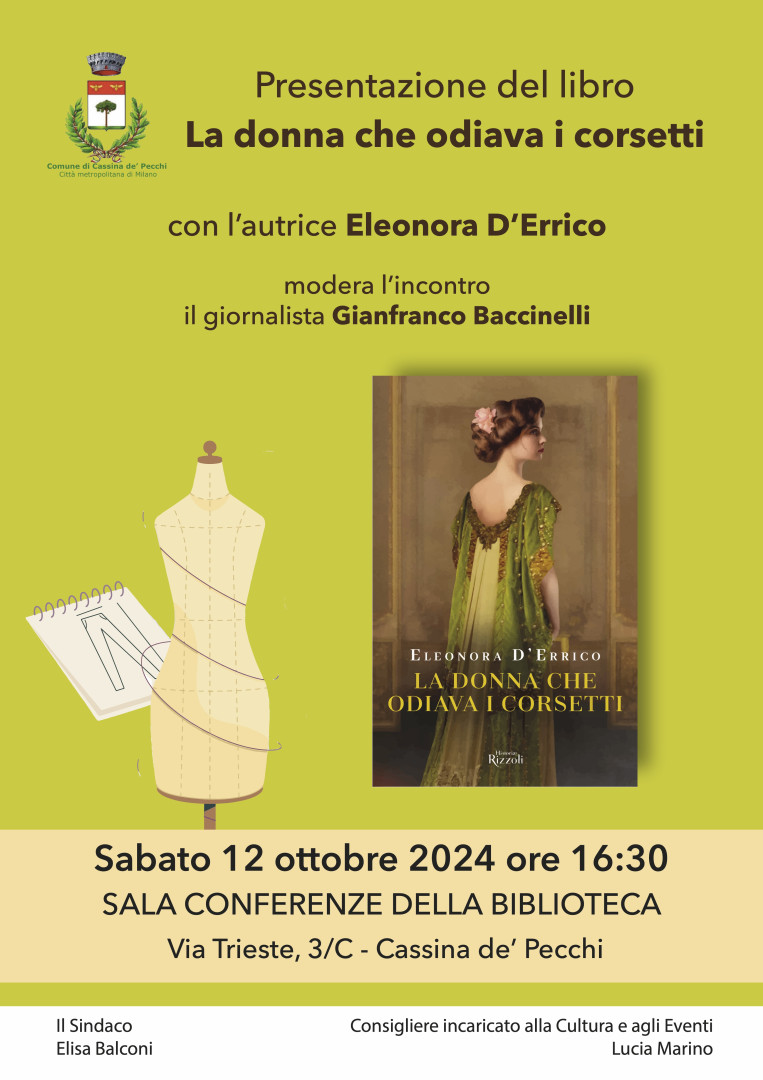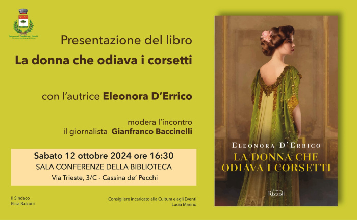 Sabato 12 ottobre, alle ore 16:30, presso la Biblioteca Comunale di Cassina de’ Pecchi, in via Trieste, la presentazione del libro “La donna che odiava i corsettidi Eleonora D’Errico, all’interno del secondo di tre sabati dedicati ai libri.