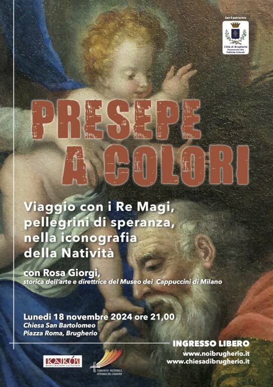 A Brugherio l’Associazione culturale Kairós, con il Patrocinio della Città di Brugherio Assessorato alle Politiche Culturali, presenta una conferenza, a ingresso gratuito, dal titolo “Presepe a colori, Viaggio con i Re Magi, pellegrini di speranza, nella iconografia della Natività”.